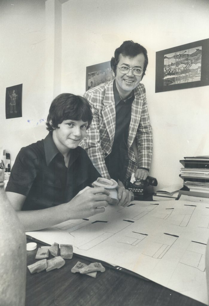 Photo of David L. Newlands (right) and a student assistant analyzing material excavated from Old Fort York in 1978. Toronto Star Photograph Archive, Courtesy of Toronto Public Library.