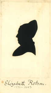 Some of her letters and related papers are also housed at Friends Historical Library of Swarthmore College (FHLSC). Each of these two Quaker archives holds one of the two extant silhouettes of Robson. Despite the commentary accompanying the silhouette at the LSF in London, it seems unlikely that the LSF silhouette represents Robson at age seventy-two. Compare it to the silhouette at FHLSC, which is dated as circa 1835. It is possible that the FHLSC silhouette, which is together with a silhouette of her Robson’s husband Thomas, was created in 1838 when Robson had returned to the United States this time accompanied by her husband. If the FHLSC represents Elizabeth Robson in her mid-sixties, the FHL silhouette cannot be from 1843 since the FHL silhouette appears to represent a younger Robson than that captured in the FHLSC silhouette.